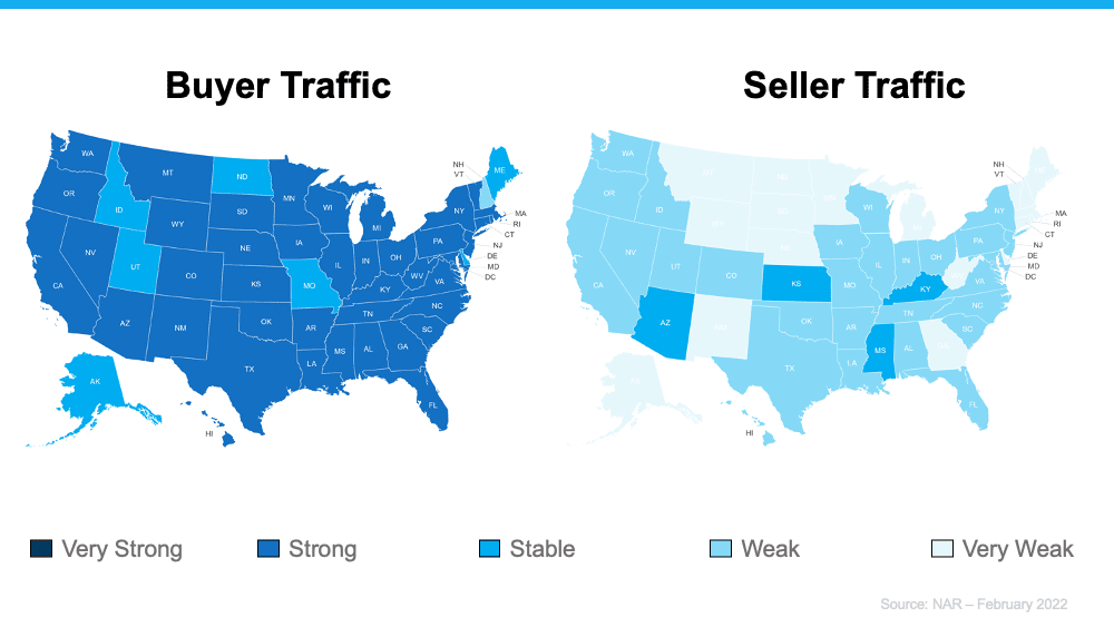 Today, there are far more buyers looking for homes than sellers listing their houses. Here are the maps of the latest buyer and seller traffic from the National Association of Realtors (NAR) to help paint the picture of what this looks like: